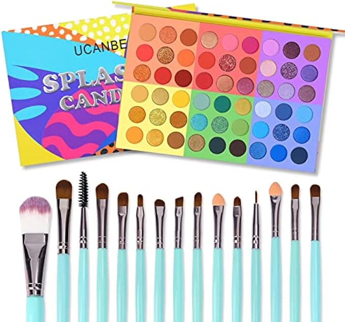 UCANBE 54 Colors Splashy Candies Eyeshadow Palette + 15pcs Makeup Brush Set, Highly Pigment Matte Metallic Shimmer Glitter Eye Shadow Bright Color Long Lasting Waterproof Easy Blending Make Up Pallet