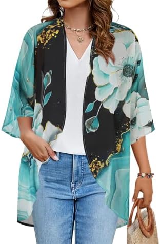 Floral Cardigan,Casual summer plus size tops,Kimono beach cover ups,Chiffon shirts,Open Front,Lace Patchwork ,Loose Puff Sleeve Its material is made of chiffon ,the fabric is sheer, airy ,feels sofe, lightweight and comfortable. The kimono can be over your tank tops or cut off shorts, even a tunic and leggings, further more the sundress,the floral kimono is the fashionable way to dress it up in the summer days. It's suit for daily casual,at home, outdoor, hawaiian beach,street,any other occasion for summer days Size:S-5XL, different colors for multiple choices #385 in Clothing, Shoes & Jewelry ( ) #1 in