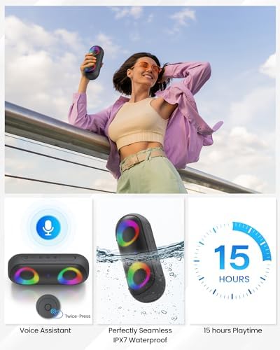 【Hi-Fi Stereo Sound】:Dual full range drivers provide 30W stereo sound quality with clear highs, accurate mids and deep bass.Built-in MIC, easily accept hands-free calls(Support Siri voice assistant function, one-key activation, enjoy smart speaker life) 【RGB Colorful Light Show】:The standalone RGB lighting system is designed for night events with 7 light colors and 6 light modes, mixed color flashes that sync with the beat, create a pulsing light show for any song, and keep the party going with streaming music in HD. 【Pair-360° Immersive Surround Sound】:Through the Wireless Pairing function, Pairing 2 speakers through a single device to obtain 60W stereo surround sound.(The playback modes of BT and AUX both support to realize wireless pairing stereo function, and we have improved the delay phenomenon of the Wireless Pairing state.) 【Super Hardware Configuration】:👍Built-in 3600mAh rechargeable battery (with Typ-C fast charging port, the longest charging time<4H);👍IPX7 most advanced waterproof material structure;👍Bluetooth 5.0 with the most cutting-edge A2DP technology👍 【Enjoy music anytime, anywhere】This is a themed portable speaker for leisure, entertainment, office, indoor, outdoor, hiking, beach, etc. Let's enjoy great music at home theaters, parties, beaches, parks, or anywhere else imaginable.