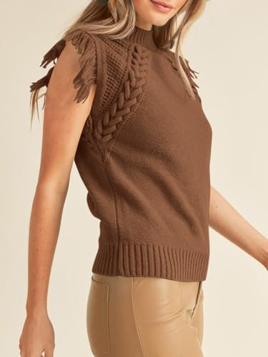 Material - Sleeveless sweater tank tops for women made of soft knit fabric, the ribbed mock neckline and braided cable knit trim detail adds a cute touch of boho, perfect for staying cozy and stylish in spring, summer and fall Features - This trendy pullover sweater vest makes a modern statement with flattering mock neck, contrast pointelle knit at shoulders with fringe, semi fitted bodice. All detailing to create a timeless and elegant finishing touch that will elevate any ensemble Match - Refresh your wardrobe with this chic knitted sweater vests, wear it alone with shorts, jeans, skirts, or layer it up over long sleeves, or layering under coats during cold weather, you’ll be ready to take a fashion-forward look Occasions - Whether you're dressing up for a night out or keeping it casual, this solid color short cap sleeve sweater vest is a versatile and must-have addition to your wardrobe Warm Tips - Machine or hand wash in cold water / Semi-fitted from S to XL, please refer to size chart before order #5,136 in Clothing, Shoes & Jewelry ( ) #3 in