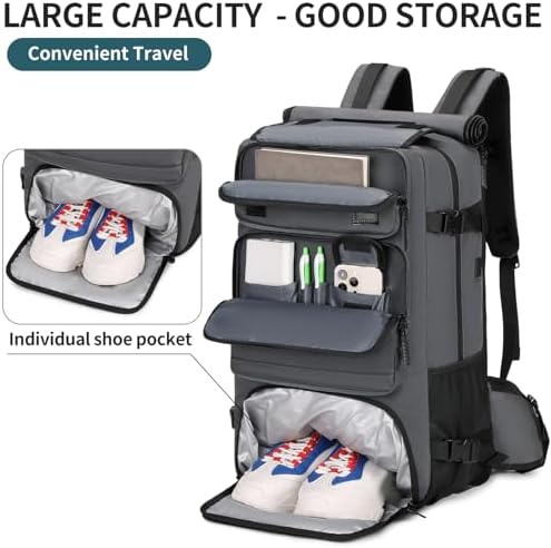 Carry on Travel Backpack for Men Airline Approved Duffle Backpack Convertible Nylon Luggage Bag Gray