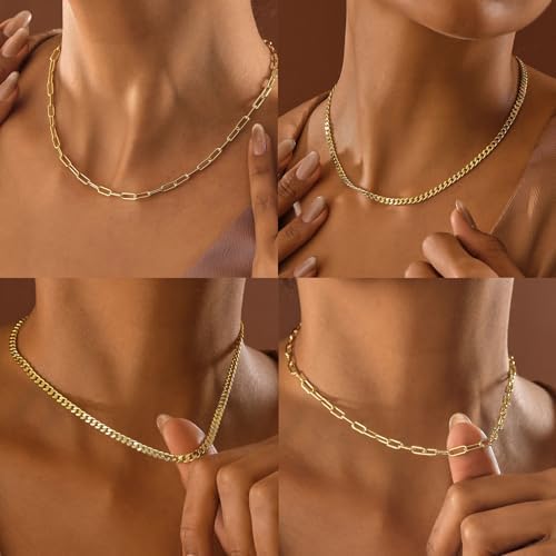Gold Layered Necklaces Design: The layered necklace is composed of a sleek herringbone chain, a trendy paperclip chain, and a classic Cuban link.Wear it alone for a classic vibe, stack it for a layered look, if you like, you can choose to add a pendant to the chain Gold Chain For Women Size: Cuban chain length: 15".Paperclip chain length: 16".Herringbone chain length: 17". Each necklace comes with a 2" extender, allowing you to adjust the length for a perfect fit Hypoallergenic Material: 14K gold plated and High quality brass material, gold layered chain necklaces are no nickel and no lead, hypoallergenic, long lasting color and safe for sensitive skin Nice Gifts: Each necklace is individually packaged.Hand it to a woman who is important to you on a meaningful day, such as a birthday, anniversary, Mother's Day, Christmas, etc. It may not be expensive, but it's all about your heart WHY CHOOSE US: Our commitment to quality sets us apart in the jewelry industry. If you have any questions about our gold chain necklace for women, please contact us and we will reply within 24 hours #4,340 in Clothing, Shoes & Jewelry ( ) #13 in