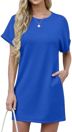 SIZE NOTE: S=US 4-6, M=US 8-10, L=US 12-14, XL=US 16-18, XXL=US 20, please refer to the ‘Size Guide’ or rich description for detailed sizes MATERIAL: Women's sundresses are made of preferred human cotton blend fabric, which is soft and comfortable, medium elasticity, medium thickness, not stuffy and very breathable EASY TO MATCH: Women's casual dress are easy to put on and take off, can be easily matched with all kinds of outfits. Loose fit and soft lines can hide belly fat better FEATURES: casual t-shirt dress, round neck, drop shoulder, short sleeve layered closure, mini length, 2 side pockets WASHING ADVICE: Wash at low temperature, machine washable, do not bleach, iron at low temperature, hang to dry #66,524 in Clothing, Shoes & Jewelry ( ) #1,026 in